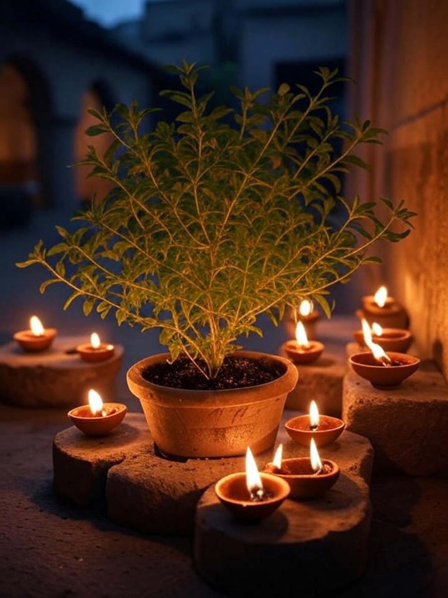 तुलसी को जल चढ़ाने और दीपक जलाने से घर में सुख-शांति आती है।